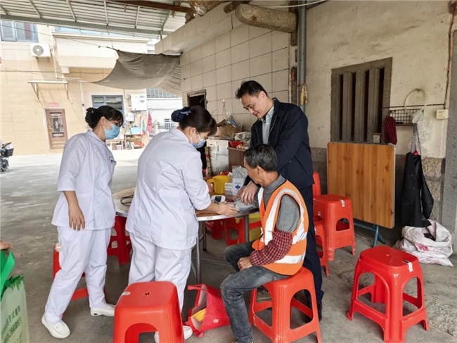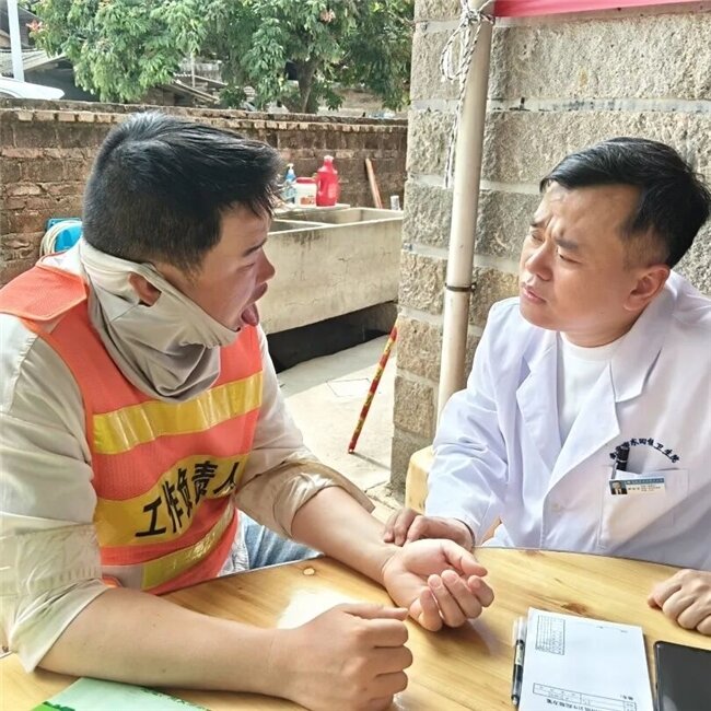 考虑到工友们长期在隧道内作业,工作环境特殊,往返不便,为不影响大家正常施工与午间休息,卫生院主动对接、精心协调,将活动时间特意安排在工人开饭后进行。医务人员放弃午休,“送医上门”,让工友们在“家门口”就能享受到便捷、贴心的健康服务。