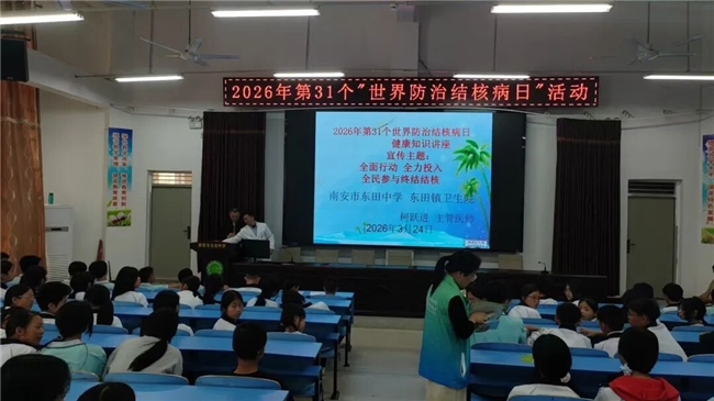 2026年3月24日是第31个“世界防治结核病日”,今年的宣传主题是 “全面行动 全力投入 全民参与 终结结核” 。为积极响应这一号召,扎实推进“无结核社区”创建工作,连日来,南安市东田镇卫生院组织开展了一系列形式多样的结核病防治宣传活动,将健康服务送进企业、送入校园,以实际行动守护群众健康。