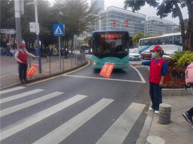 为守护道路交通安全与文明,志愿者们深入辖区重点路口、学校周边及交通繁忙路段开展文明交通执勤。志愿者们配合维护路口通行秩序,劝导行人与非机动车不文明交通行为,引导车辆礼让行人、市民安全过街,以坚守与规范助力道路畅通,为城市文明交通建设贡献公交力量。