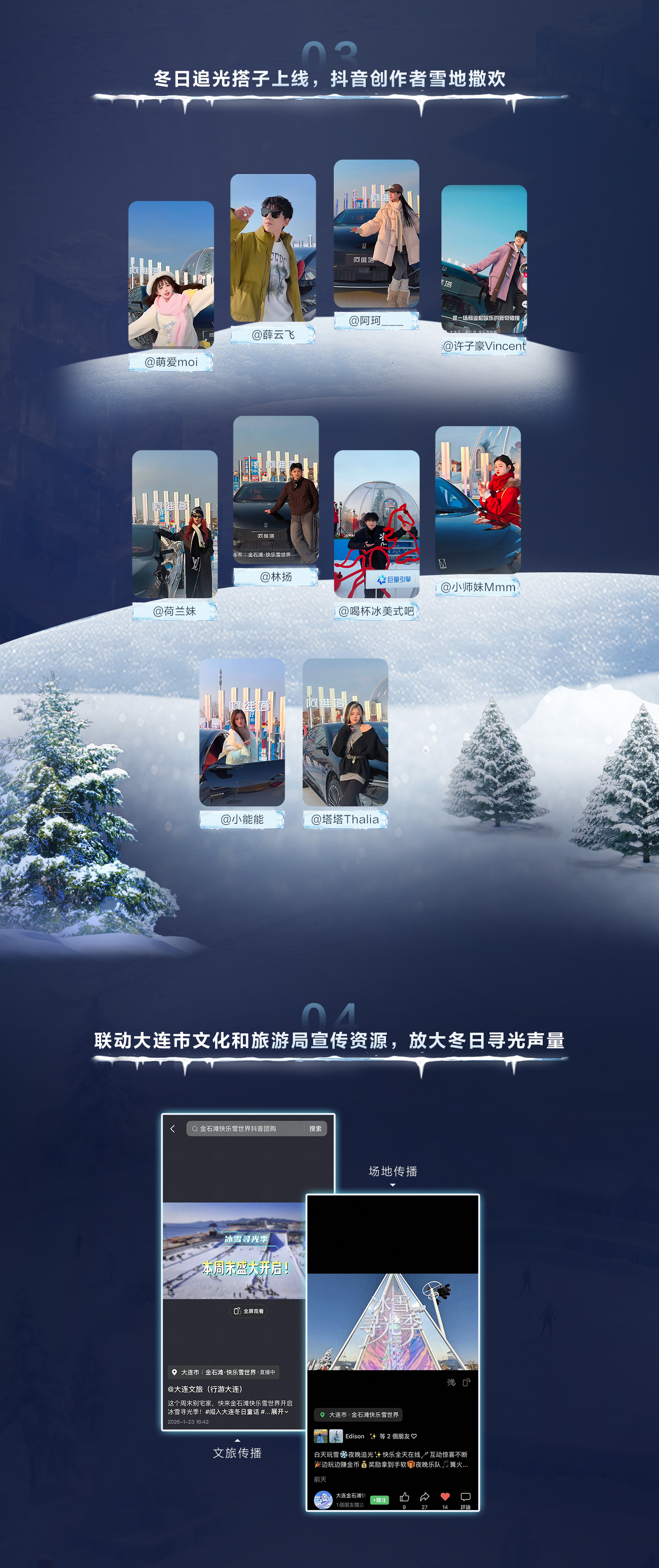 「放驾计划|冰雪寻光季」依托大连市文化和旅游局的城市级权威背书,撬动城市影响力,更赋予活动满满的城市温度与公信力,让品牌与用户的沟通更具信任感。
