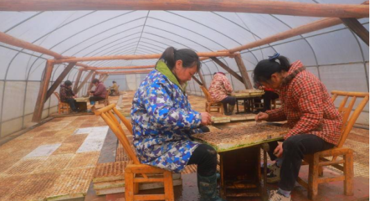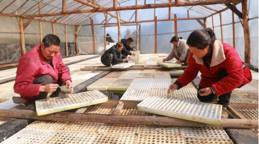 与此同时,面对集中育苗点用工密度高、技术要求严、时间节点紧的现实挑战,金果坪烟叶收购站还联合人社、农业等部门,创新组建了40多支“农业家政工”队伍。3月23日,在泗井水村白肋烟育苗大户李发科的漂湿育苗大棚里,10多名“农业家政工”正熟练地使用自制小镊子为烟苗间苗补苗,这支队伍有效缓解了育苗大户在关键时期的用工难题,确保了育苗工作的有序推进。