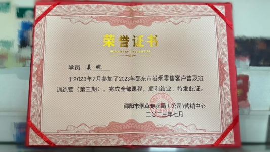 在2023年,姜魄参加了邵东市卷烟零售客户普及班训练营。从此之后,他便“一发不可收拾”,往后的几年,只要市里组织了培训,他都积极地报名。“培训内容很丰富,有商品陈列技巧、商品推介方法、顾客沟通艺术……我学到了很多新东西。”培训期间,他从未迟到过一分钟。姜魄拿出了当年上学的那股劲儿,白天认真听讲记笔记,晚上回到住处反复琢磨。