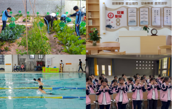 学校围绕“让每一位毕业生掌握游泳技能”的目标,系统开展游泳教学;开设特色音乐课程,推动“每位初中生学会一项乐器”;建设劳动实践基地,提供种植、体验等平台。同时,以“敦品笃学、积极向上”为校园风尚,将德育融入全过程,通过组织徒步研学、举办地理模型展与美术展等实践活动,深化“双减”与五育并举,助力学子在知行合一中厚植文化素养,赋能成长。
