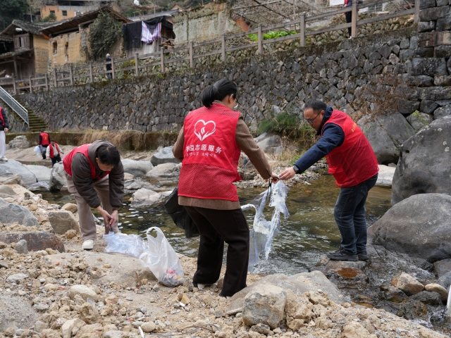 图为“香溢”志愿者联合村镇志愿者开展“清河道 护生态”志愿活动。(袁桢旻 摄)