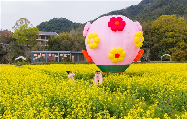 “杭坪号”观光小火车缓缓穿行于金色油菜花海,春风裹挟花香扑面而来,成为游客争相打卡的场景。“小火车、非遗手作、花艺小课堂,孩子玩到不想走!”带着全家来玩的游客张小娟笑着点赞,“这里特别适合小朋友假期来打卡。”