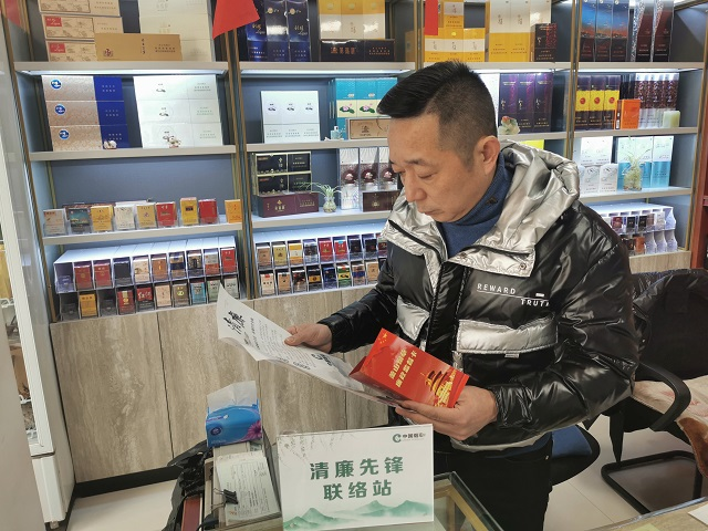 在零售终端,一本《清廉手册》送到每一位客户手中,内容涵盖廉洁从业规范、诚信经营倡议、监督渠道说明,成为客户与烟草公司之间的“廉洁契约”。通过客户终端设备推送“清廉明示承诺”H5与PPT,让廉洁宣传“动”起来、“活”起来。