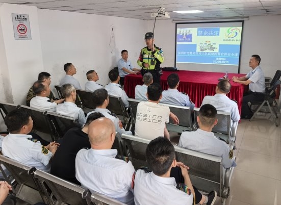 近日,深圳巴士集团第二分公司李朗车队在翠枫豪园公交总站开展交通安全专题培训,邀请深圳市交警局龙岗大队戚警官授课,40名一线驾驶员参加学习。