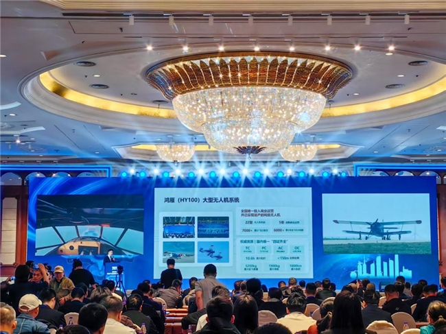 鸿雁(HY100)大型无人机由天域航通自主研发。该机型最大起飞重量达5.25吨,最大商载1.9吨,可轻松承载生鲜冷链、工业零部件、应急物资等多种货物。其超短距起降能力尤为突出,最短起降距离不足150米,即便在大连长海机场800米短跑道等简易起降场地也能安全起降,从而有效激活区域小型通用机场枢纽价值,构建“微枢纽+主干网”的低空飞行网络。