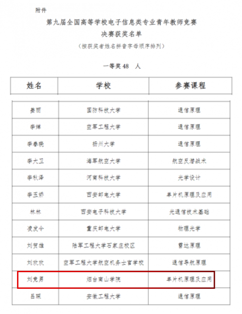 烟台南山学院教师在2025年度第九届全国高等学校电子信息类专业青年教师授课竞赛中喜创佳绩