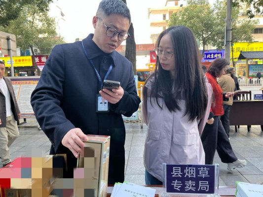 3月13日,在第44个国际消费者权益日即将到来之际,湖北恩施来凤县城步行街,一个特殊的“摊位”被围得水泄不通——来凤县烟草专卖局(