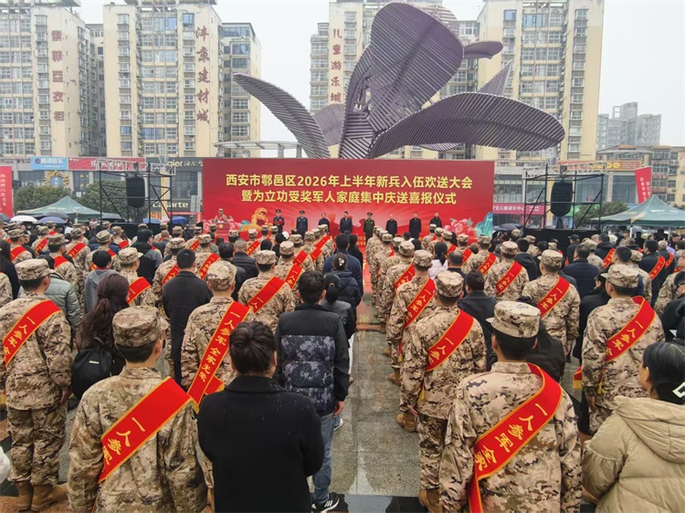 西安市鄠邑区隆重举行2026年春季新兵入伍欢送大会暨立功受奖军人家庭集中庆送喜报仪式