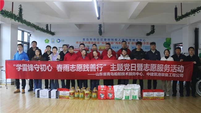 为深入传承新时代雷锋精神,彰显社会责任担当,凝聚党建共建合力,在3月5日学雷锋纪念日,中建筑港装备工程公司联合山东省青岛船舶技术服务中心开展“学雷锋守初心,春雨志愿践善行”主题党日暨“建证未来”志愿服