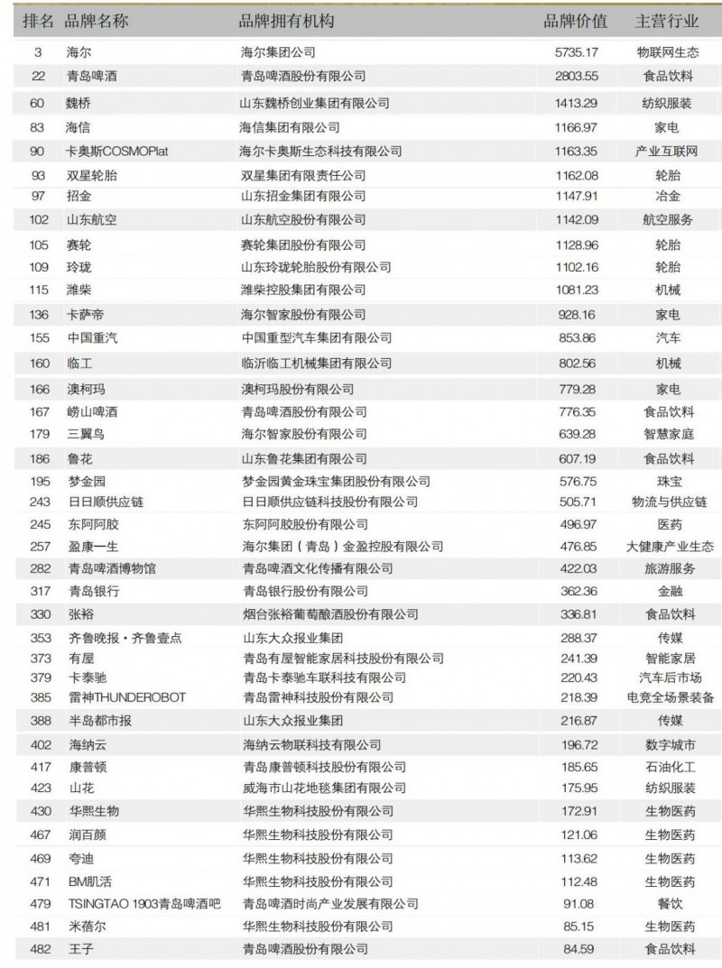 山东40个品牌上榜中国品牌500强,居全国第三