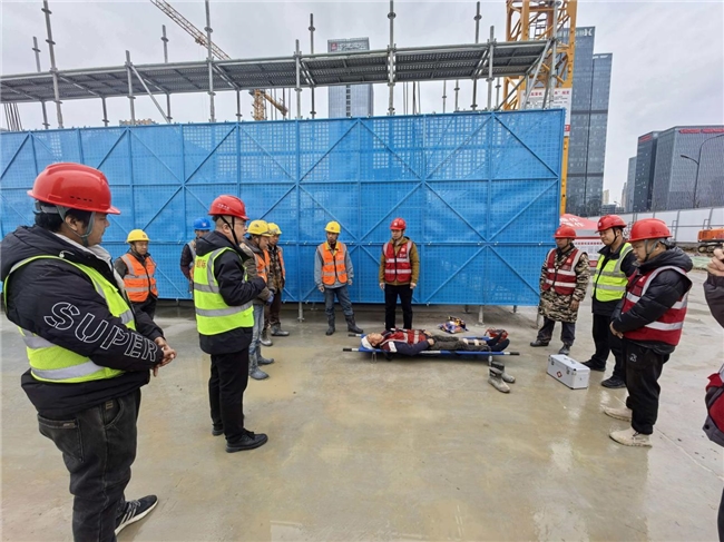 近日,合肥市经开区智能科技园六期北地块项目开展高处坠落应急救援实战演练。演练历时30分钟,高效完成事件上报、现场警戒、伤员急救、
