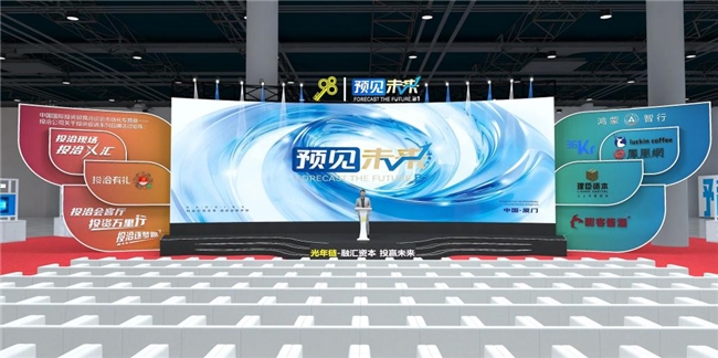 由国贸会展创新打造的预见未来资本项目馆面积达8000平方米,该馆突破传统展陈模式,以"全产业链、全场景式"为设计理念,汇集产业园区、龙头企业、优质项目与投资机构,构建"展示—对接—落地"完整生态链,为投资者和企业提供一站式服务。
