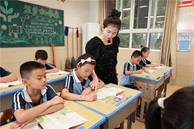 “关注每个孩子的心跳,才能读懂他们的世界”,这是丁老师刻在心底的教育理念。走进她的课堂,彩色粉笔勾勒出灵动的知识图谱,她弯着腰与学生轻声交流,眼神满是温柔,课堂宛如充满童趣的乐园。