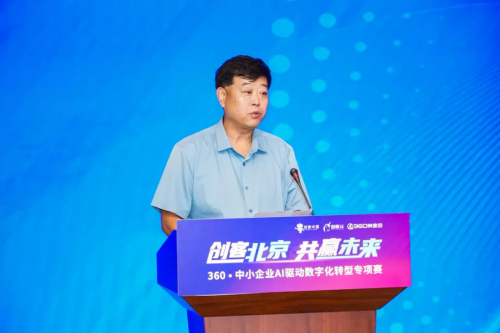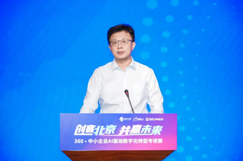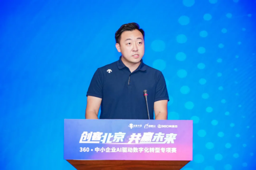 北京市经济和信息化局二级巡视员张占锋发表致辞。张占锋指出,在北京市各区的鼎力支持及社会各界的积极参与下,“创客北京”已经发展成为北京市具有较大影响力的创新大赛。聚焦高精尖和未来产业领域,涉及人工智能、信息技术、高端制造、具身智能等七大领域共20个细分行业,此次大赛吸引了6098个优秀项目参与,数量再创新高,充分展现了北京市创新创业领域的蓬勃活力。希望广大创业者朋友们利用好360•中小企业AI驱动数字化转型专项赛这个平台,充分展示团队的实力和风采,交流分享经验,互相学习借鉴,共同进步。作为北京市中小企业主管部门,北京市经济和信息化局将一如既往支持服务创业者,完善政策,加大投入,优化双创环境,为中小企业和创客搭建更广阔的舞台。