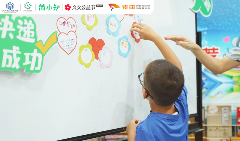 在活动尾声,简小知安排了“好书童享”环节,让孩子们向远方山区的小朋友讲述自己最喜欢的书籍。通过文字与故事的分享,孩子们不仅加深了阅读理解,还通过表达与交流建立起温暖的友谊桥梁,让阅读的力量跨越千里。