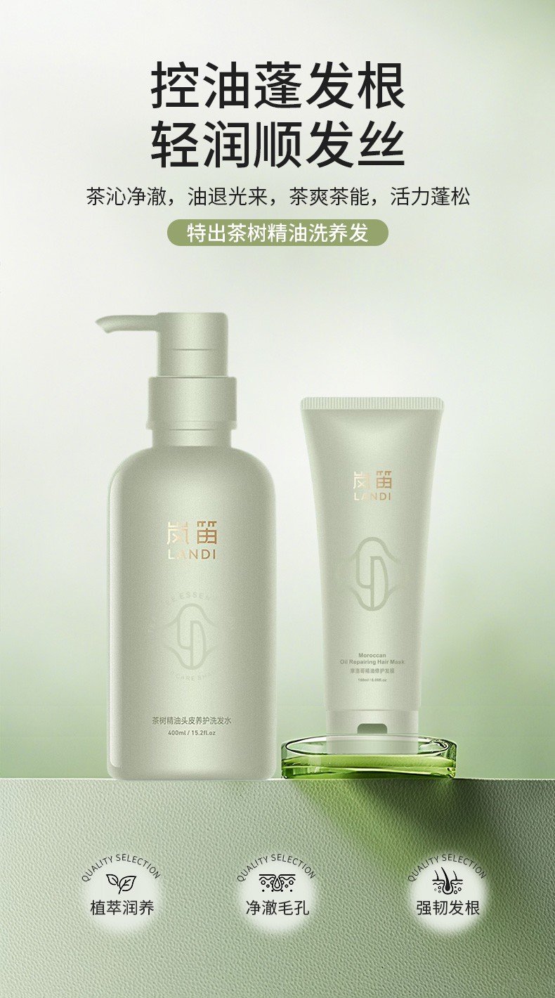 作为品牌明星单品,岚笛茶树精油头皮养护洗发水以“清洁 + 养头皮”为核心功能:精选天然茶树精油,搭配氨基酸温和清洁配方,既能深层溶解头皮油脂与污垢,又能舒缓头皮敏感泛红,调节头皮微生态平衡 —— 经第三方检测数据显示,连续使用 28 天,可使头皮出油量减少 42%,头屑改善率达 38%,从根源解决头油、头痒问题,为头皮打造健康 “生长土壤。