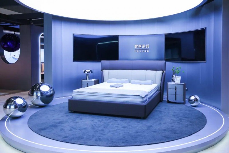 雅兰本次展出知夜、绿径、静茵等系列产品,融合材料创新、支撑系统与智能响应,配合4C哄睡系统,实现“更快入睡、更深睡眠、更好醒来”;慕思此次主推T11+智能床垫,搭载AI潮汐算法2.0,依托百万人体数据实现分区调节与睡眠管理,并新增心率预警与睡姿监测功能;顾家家居于现场打造“卧室空间体验馆”,以科技睡眠为主题,通过场景化体验展示智能化探索,并发布IDeep高端深睡系列新品,以全球精选材质打造奢华睡眠体验;梦百合携多款智能睡眠产品亮相展会,包括接入华为全屋智能生态的L7、支持米家生态的S系列以及健康呵护、健康关爱等,精准覆盖不同用户群体的睡眠场景;丝涟带来李娜联名款焕梦床垫,采用专利美姿弹簧与蔚蓝乳胶,结合透气层与柔滑天丝面料,在精准承托与腰部呵护间实现平衡。