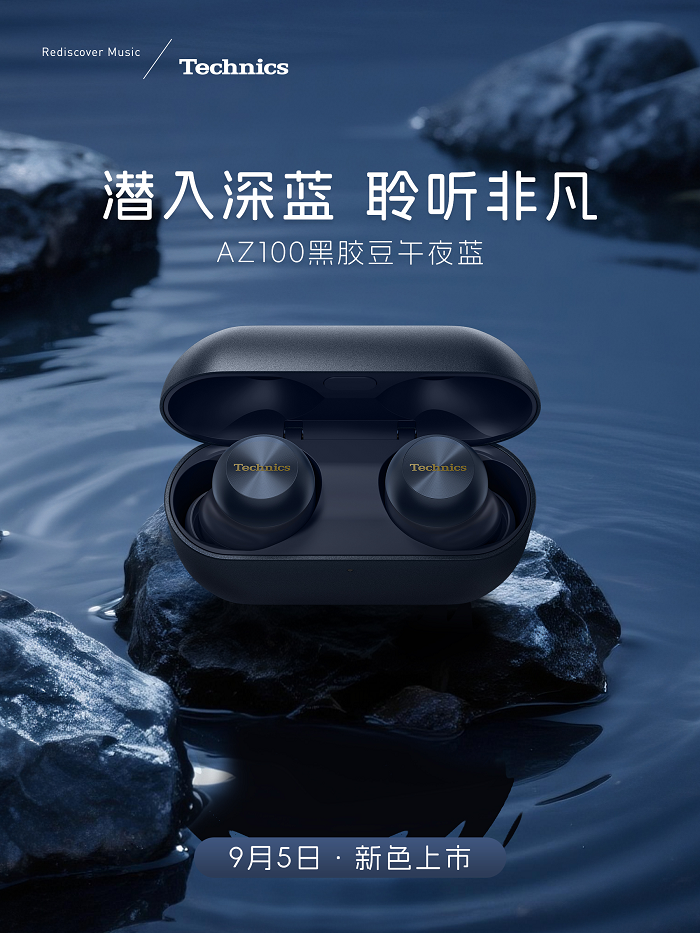 2025 年9 月Technics 为旗舰款真无线蓝牙耳机家族EAH-AZ100新增一款时尚配色——午夜蓝。EAH-AZ100 凭借其卓越的音质、智能的