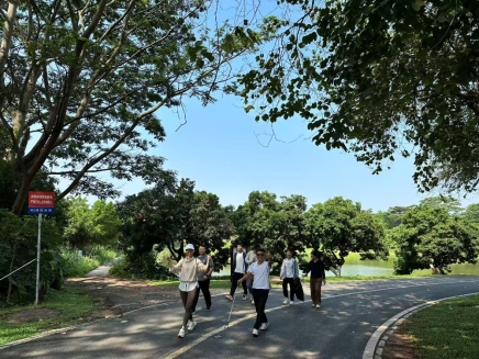 随着一声鸣笛,员工们分组出发。沿途,松山湖水面开阔如镜,晨风拂过,泛起层层细浪,阳光洒落,碎金万点。大家不仅专注欣赏湖边美景,更化身“环境侦探”,对步道两侧、观景平台、草坪斜坡等区域展开地毯式清理。烟头、塑料袋、饮料瓶、甚至深埋在泥土中的碎玻璃,都被一一捡起分类装袋。活动巧妙融入团队挑战元素,各小组在指定打卡点完成“创意合影姿势比拼”任务,用镜头定格春日盛景,在紧张的工作之余放松了身心、锻炼了体魄。
