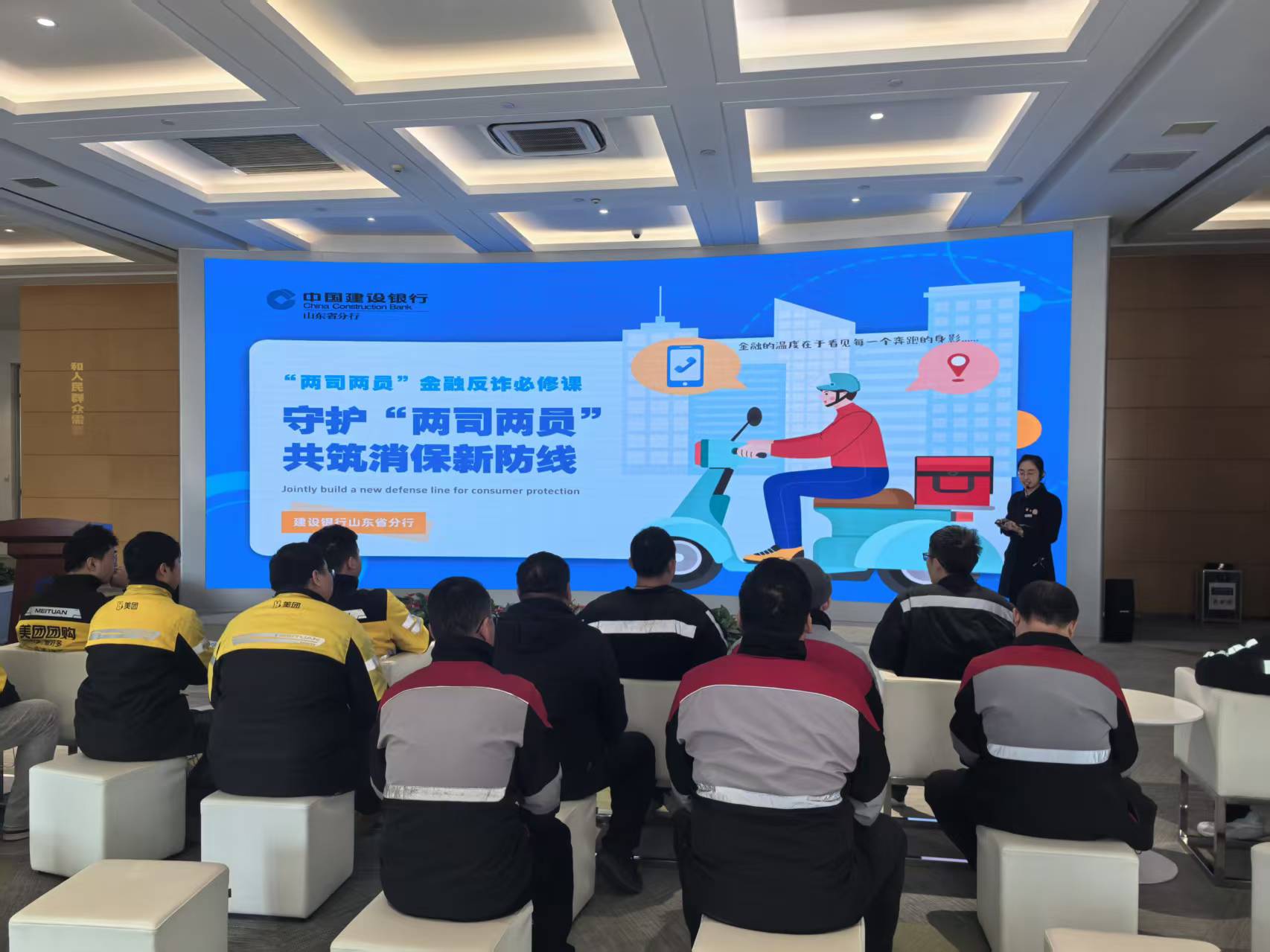 为深入贯彻落实金融消费者权益保护工作要求,切实提升新就业群体金融风险防范意识与自我保护能力,在3·15国际消费者权益日来临之际,3月12日,中国建设银行山东省分行联合济南分行,在建行山东省分行金融教育基地举办“护佑城市新动力,‘骑’心共力,保障金融权益”主题金融教育活动。本次活动精准聚焦外卖骑手、快递员、网约车司机、货车司机等“两司两员”城市新就业群体,以趣味化、场景化、轻量化的宣教形式,将金融知识与暖心服务送到城市奔波者身边,以金融力量守护城市发展新动力。