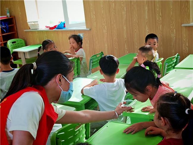 文明生活与文化传承的环节更显用心。团队成员手把手教孩子七步洗手法,将健康习惯的种子植入日常生活;闻辨金银花的清香、触摸陈皮的纹理、听北大荒垦荒的故事时,孩子们在看、闻、听中感受黑土文化的厚重,也让中医药的淡淡药香在童年记忆里留下独特印记。