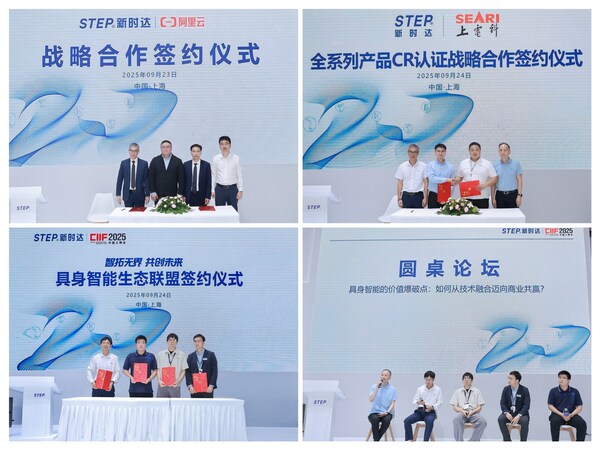 论坛期间,新时达与阿里云签署全面合作协议,共同推进具身智能云端训练与仿真测试;与上海电器科学研究所达成CR认证合作,推动机器人标准体系建设;并联合绿的谐波、梅卡曼德、乐聚机器人等企业成立具身智能生态联盟。圆桌论坛环节,行业专家围绕"技术融合如何实现商业共赢"展开深度对话,为产业发展提供新思路。此次论坛全面展现了新时达在具身智能领域的技术布局与开放生态理念,为公司智能制造战略注入新动能。