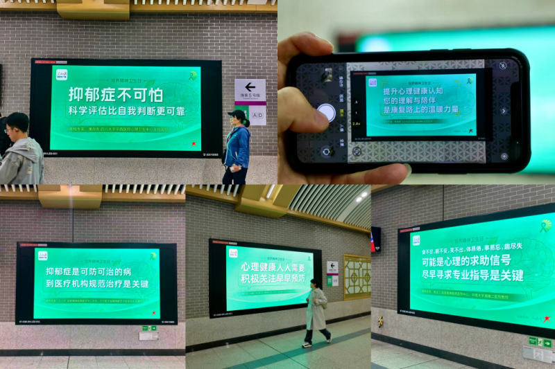 今年10月10日是第34个世界精神卫生日,由渡过抑郁患者社区主办、灵北中国公益支持的2025世界精神卫生日绿丝带系列活动——“焕新认知,重回美好”公益科普活动暨抑郁症患者艺术作品展在北京红楼公共藏书楼成功举办。活动采用艺术展览、专家讲座、患者分享、舞台剧表演等多种形式,同时还在北京、上海和广州6个地标户外屏幕点亮绿丝带,并在北京地铁8条线路共计95个站点电子屏展示绿丝带系列疾病科普宣传口号。旨在通过多渠道,多形式的权威呼吁和创意科普,共同推动公众对抑郁症的认知,提升公众对于学业失能、工作失能的年轻人群体的关注,帮助患者改善认知功能,协助他们重返社会,真正重回美好。