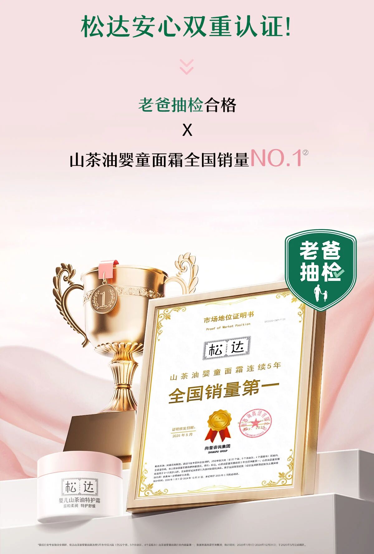在功效护肤的浪潮中,信任是品牌最珍贵的资产。在消费者对“天然”存疑、对“安心”困扰的当下,松达婴儿山茶油霜与特护霜通过三方权威检测和医疗级临床验证的双重认证,主动树立了“不怕测、不怕验”的品质标杆。这背后,是松达数十年如一日,以长期主义战略定力专注山茶油核心科技研发,让“中国宝宝用中国原料”的美好愿景落地为具备坚实科技支撑的公信力承诺。