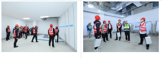 经验交流环节结束后,与会人员前往观摩展示区进行参观,实地参观了质量样板展区、科技示范展区、安全管理展区、绿色施工展区、机电设施展区及党建融入展区等六大展区。通过20个功能房间及北侧走廊的实景展示,全方位呈现了项目在业务用房建设、质量管控、安全管理、机电安装、党建引领等领域的先进经验与实践成果。