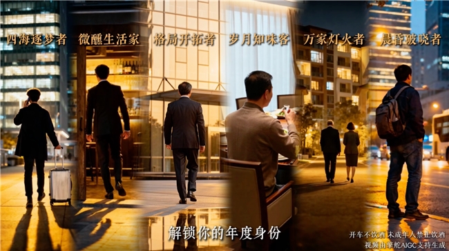 其中,擎舵 AIGC 生成的年度回顾视频,核心亮点在于以用户真实生活轨迹为蓝本,通过 AI 技术实现多面人生的情感化叙事——既贴合不同人群的生活场景与精神诉求,又将茅台酱香酒“岁月留香” 的品牌内核自然植入,让每类用户都能在视频中看到自己的影子,从而强化情感共鸣与品牌认同。