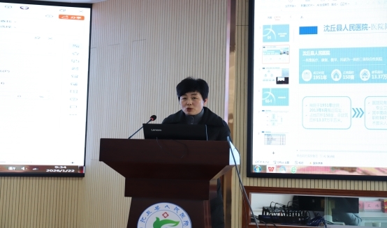 在沈丘县人民医院党委书记欧阳剑作领导致辞后,沈丘县人民医院总会计师王莉系统汇报了该院在预算成本系统建设与应用方面的目标、成果与数据分析。