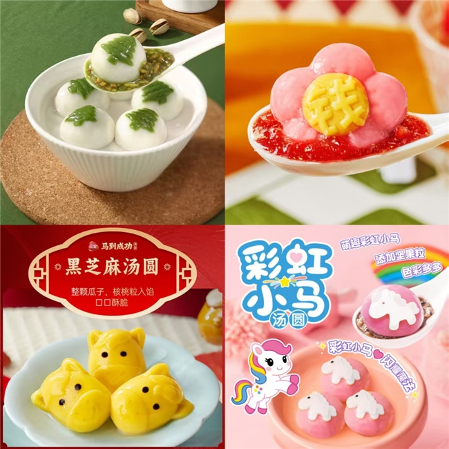 满足健康需求的同时,高颜值、好寓意、趣味化也成为今年汤圆市场的新风尚。如今,消费者购买汤圆,不再仅仅为了饱腹,更是在购买一份好心情、一个好彩头,期待通过食物获得情绪价值与情感共鸣。