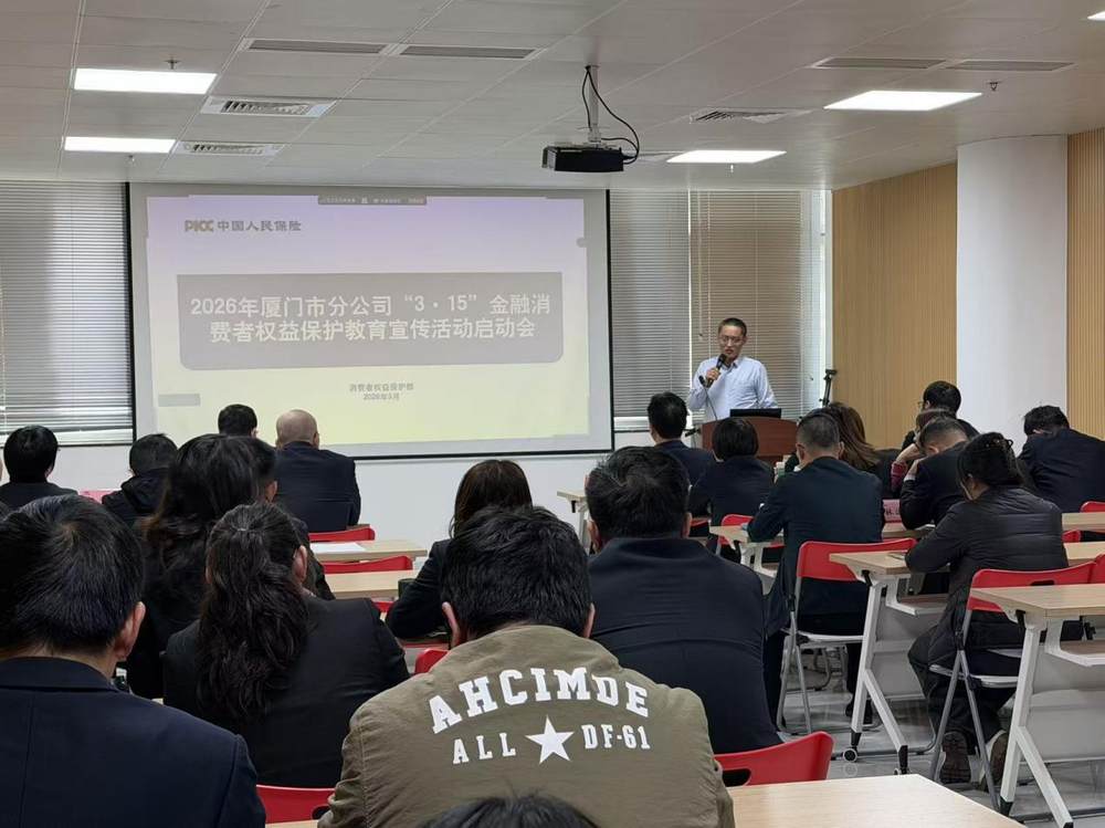 2026年3月10日,人保寿险厦门市分公司召开“3·15”金融消费者权益保护教育宣传活动启动会,以“清朗金融网络 守护安心消费”为主题,全面部署宣传活动,旨在提升消费者金融素养,筑牢财产安全防线。