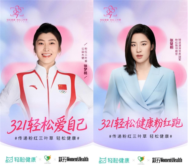 今年的“321轻松健康·粉红三叶草”项目特别邀请自由式滑雪空中技巧金满贯获得者、奥运卫冕冠军徐梦桃,爱心艺人李若彤、欧阳娜娜、马苏担任公益大使,新生代艺人张祎格、向婧怡、吕欣蔓、陈昕葳担任爱心助力官,借助她们的社会影响力,通过线上倡议、线下参与等方式,呼吁更多女性重视自身健康,主动学习防癌知识,养成定期筛查习惯。健康倡导官的加入,进一步提升了项目影响力,也助力轻松健康搭建起链接政府、企业、媒体与用户的女性健康协同平台,推动女性健康理念持续深化。