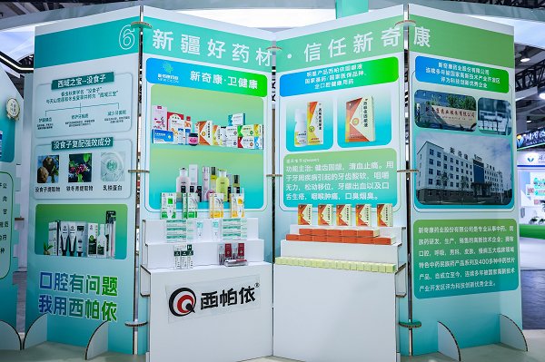 依托新疆独特光热水土禀赋,新奇康药业深耕道地药材资源开发与品质管控,构建全链条质量保障体系。展会期间,企业集中亮相民族药、中药饮片、大健康、药食同源、美妆护肤五大品类产品矩阵:西帕依固龈液作为民族药口腔领域代表品种,依托新疆道地药材组方,遵循经典配伍结合现代制剂工艺,临床应用广泛;祖卡木颗粒、寒喘祖帕颗粒等核心民族药品种,优选红花、甘草等道地原料,严格符合国家药典及临床规范。此外,西帕依口腔护理系列、肉苁蓉与红花药食同源产品、奇沐研究院美妆护肤系列等大健康产品,以新疆特色资源为基底,满足大众多元化健康消费需求。