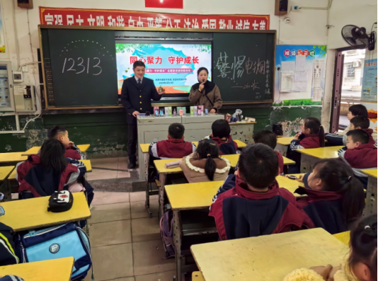 清晨的校园路口,他们手持引导牌疏导车流,牵着孩子们避开车流、提醒注意路面湿滑,为上学路筑牢安全防线;走进课堂,开展冬季安全微宣讲,用趣味案例普及防火、防一氧化碳中毒、防滑跌知识,教导电气设备操作与防范逃生技巧;深入乡村学校,送上保暖文具与小礼品,清理卫生死角、整理杂物疏通通道,在周边设立警示标识,为孩子们营造安全温暖的社会环境。