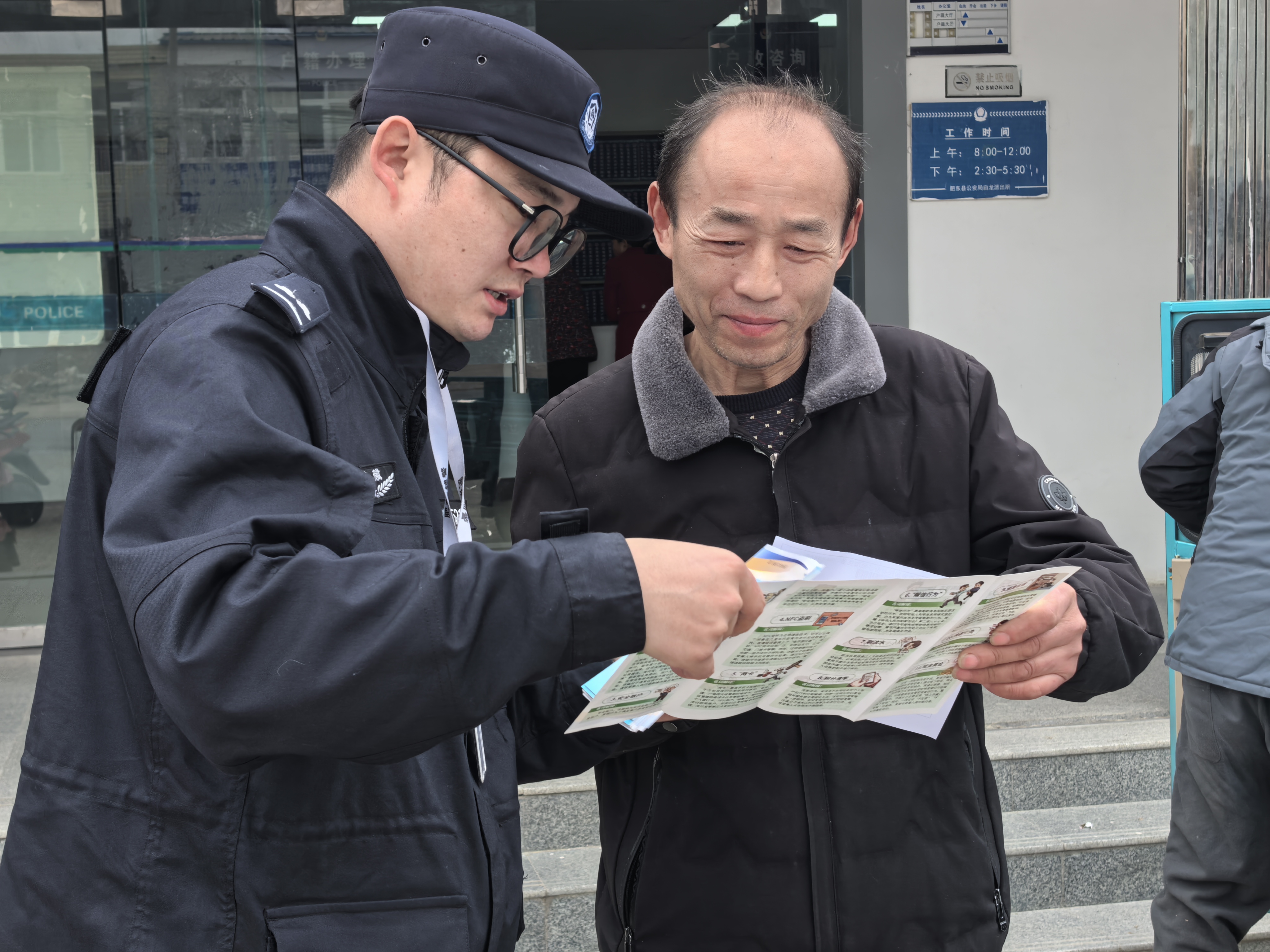 “阿姨,这份反诈宣传单您看看,平时接到陌生电话要求转账的,千万别信!”“大爷,邪教组织害人不浅,咱们要擦亮眼睛,坚决抵制!”3月27日,在肥东县公安局白龙派出所户籍大厅,民警辅警利用群众办证等候间隙,开展了一场接地气的安全防范宣传活动。